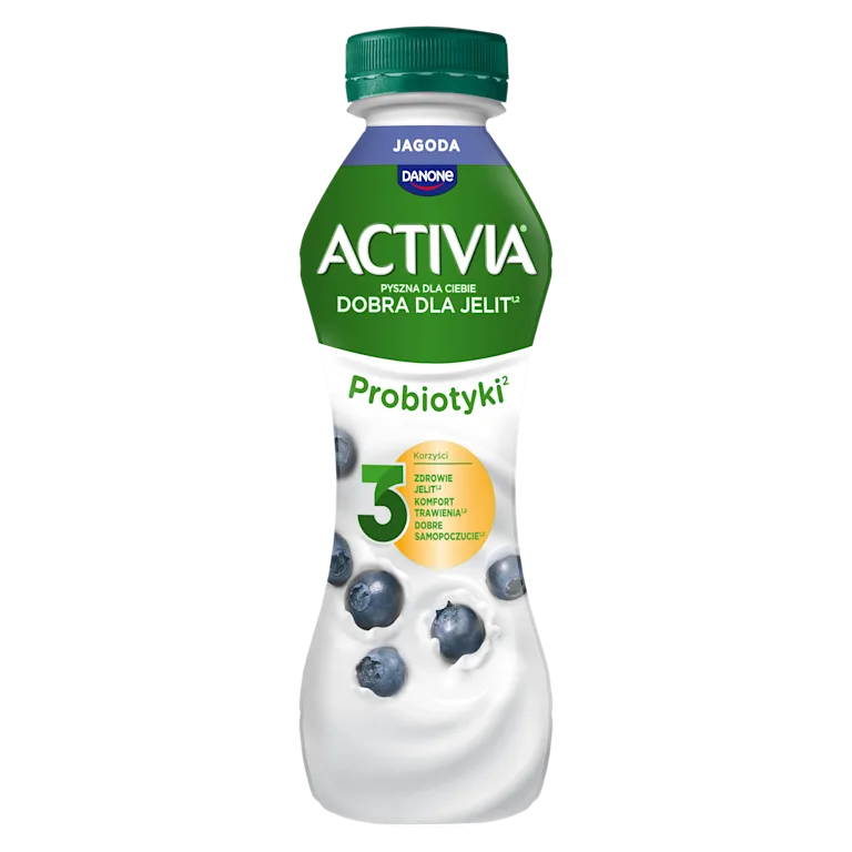 Jogurt naturalny do picia o smaku jagodowym to świetna propozycja dla wszystkich osób kochających jagody. Rozsmakuj się w tym wariancie i odkryj działanie Activii – doskonałego źródła wapnia1 oraz żywych kultur bakterii 2.