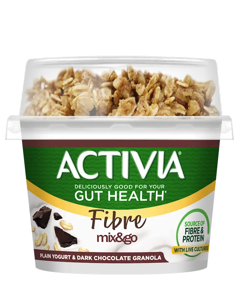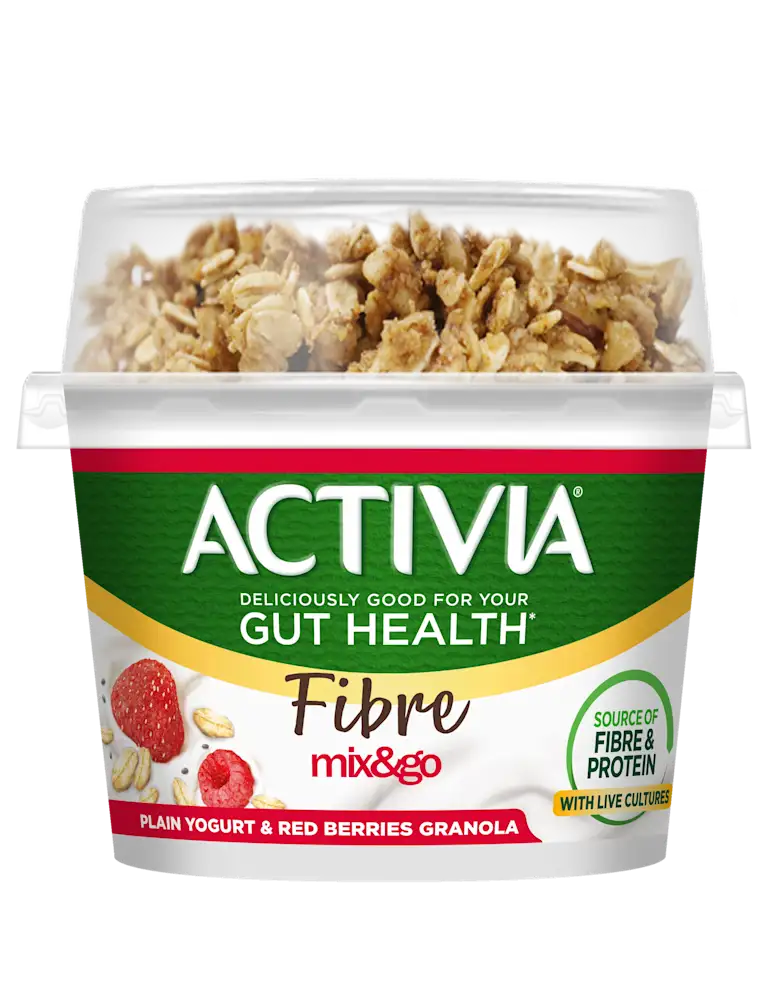 Activia Mix&Go wspiera zdrowie Twojego układu trawiennego, zawiera błonnik, wapń i żywe kultury bakterii, a zarazem świetnie smakuje! Nasza nowość ma w zestawie biodegradowalną łyżeczkę (znajdziesz ją pod pojemnikiem z granolą) i może być przechowywana aż do 4 godzin poza lodówką! To pyszna przekąska, która może towarzyszyć Ci m.in. na piknikach lub jako drugie śniadanie w pracy. Spróbuj już teraz i przekonaj się sam(a), jak pysznie smakuje Activia Mix&Go!