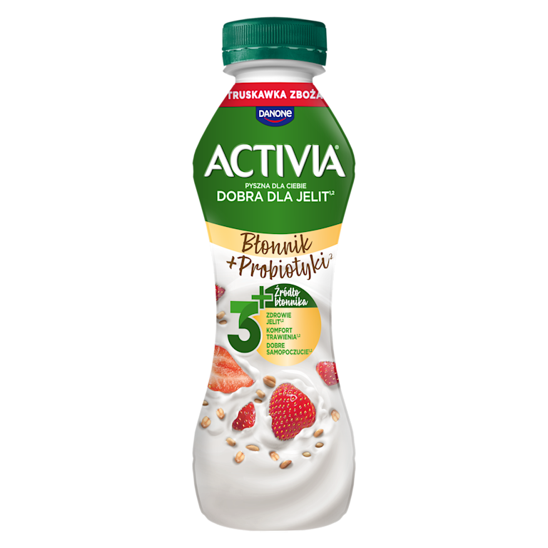 Jogurt do picia z błonnikiem Activia to pyszne połączenie jogurtu i zbóż, które oczaruje Cię smakiem i aksamitną konsystencją! To świetna propozycja dla wszystkich, którzy pragną czerpać przyjemność z każdego łyka, a zarazem chcą dbać o zdrowie swoich jelit, komfort trawienia oraz dobre samopoczucie. Activia. Pyszna dla Ciebie, dobra dla jelit.1,2